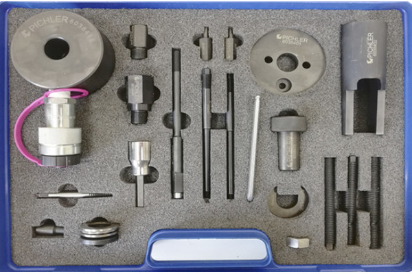 Комплект 26367 предназначен для максимально надежного удаления форсунок без повреждения посадочного гнезда или сопутствующих элементов системы впрыска. Основным элементом является гидравлический или механический усилитель, способный прилагать усилие до 12 тонн, что позволяет устранить даже трудно вынимаемые или сломанные форсунки. В комплект входит инновационная аппаратура для захвата и удержания элемента, а также приспособления для равномерного распределения усилия.